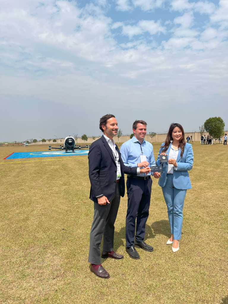 Nacho, CCO Europa e LATAM, Adriano Buzaid, CEO Gohobby e Victoria Jing Xiang, COO da Ehang na Europa e América Latina