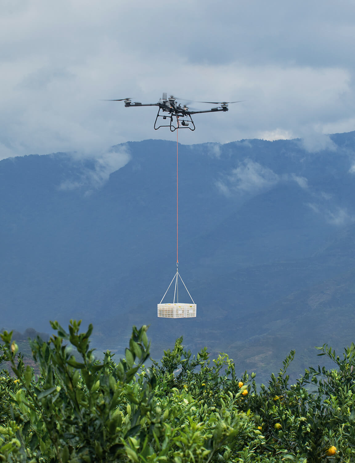 O T70P transforma-se em uma solução de transporte com uma capacidade de elevação de 65 kg, ele carrega mais e viaja mais longe. Recursos como Controlo de equilíbrio automático, detecção de peso e navegação automática para pontos de carga e descarga tornam-no adaptável a vários cenários de transporte agrícola.
