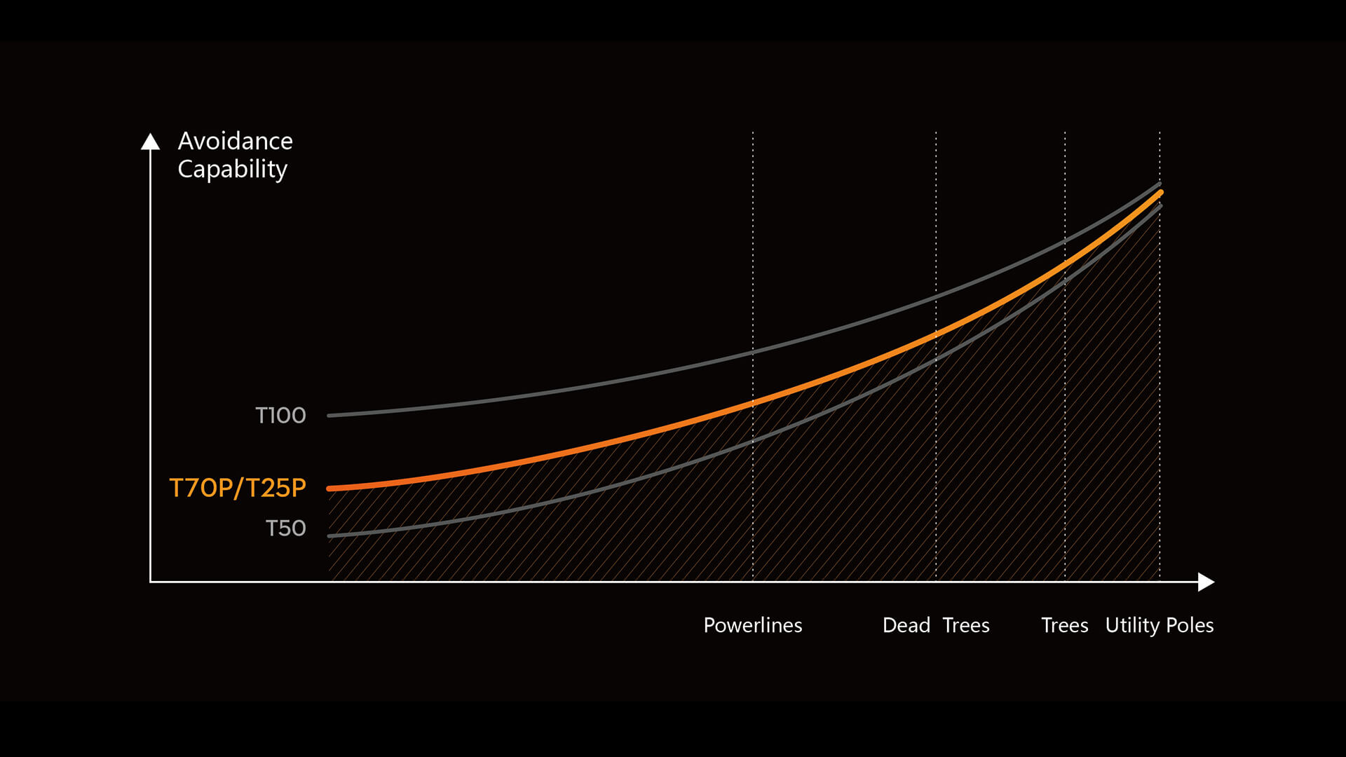 Suporta evitação de obstáculos horizontal e para cima em 360°, juntamente com Rastreio de Terreno em encostas íngremes sem mapeamento aéreo. A taxa de detecção para cabos diagonais e linhas de energia foi melhorada, garantindo que todos os obstáculos no campo sejam claramente detectados.