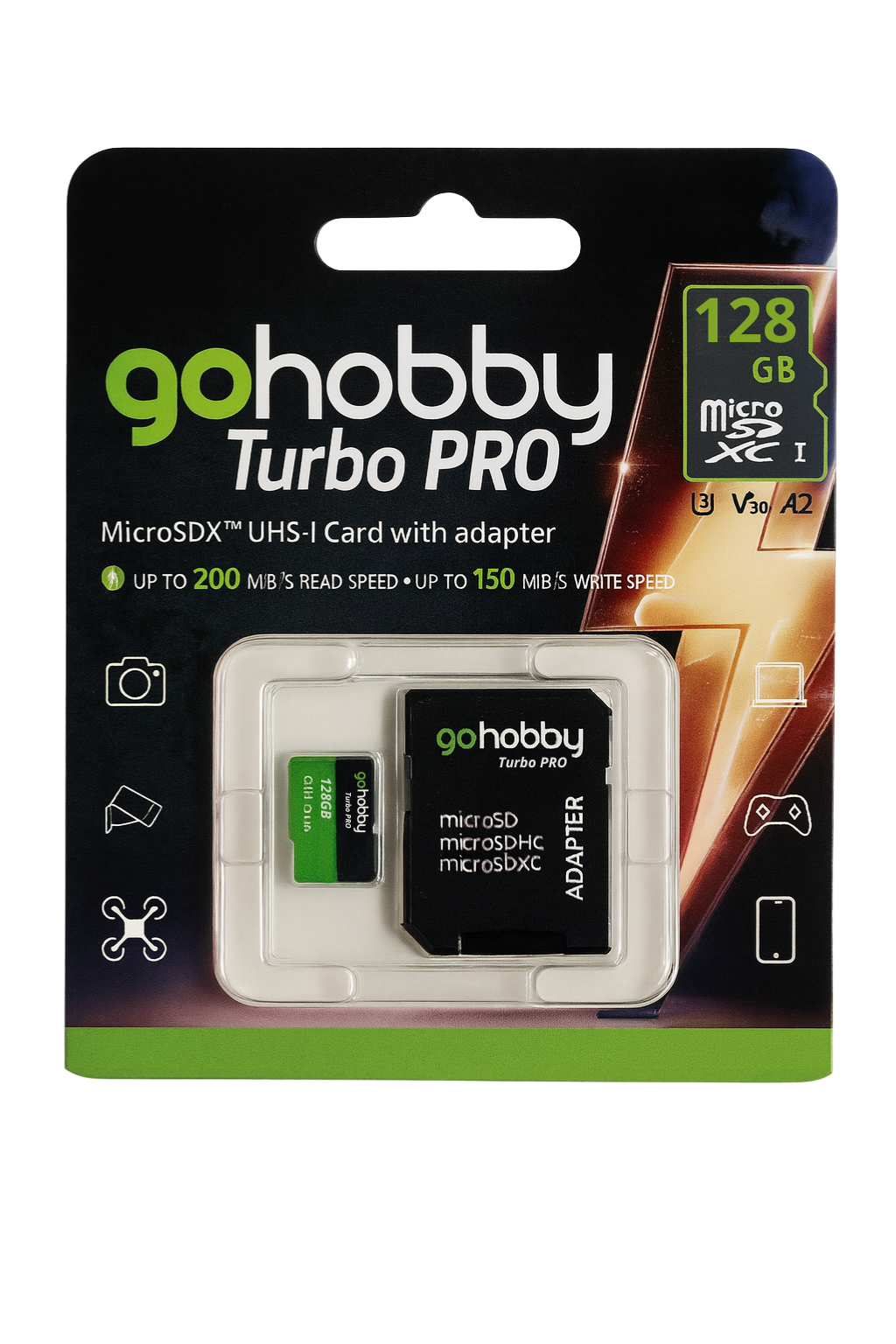A linha de cartões de memória SD Gohobby Turbo Pro, nas capacidades de 64GB, 128GB, 256GB e 512GB, oferece alto desempenho para câmeras de segurança, câmeras fotográficas, celulares e laptops. Com velocidades de leitura e gravação de até 200 MB/s, garante transferências rápidas e armazenamento eficiente de fotos e vídeos.